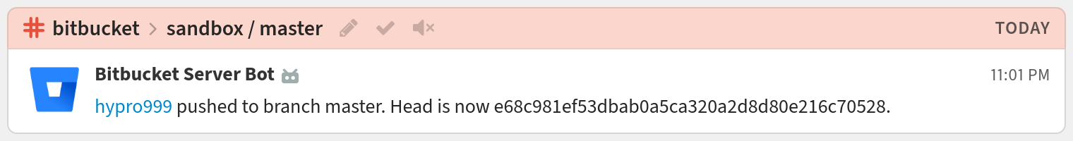 You're done! Your Bitbucket Server notifications may look like this: