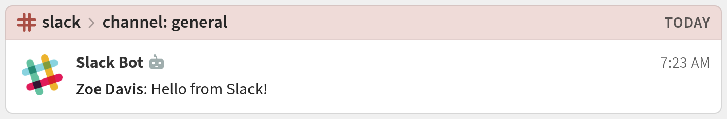You're done! Your Slack notifications may look like this: